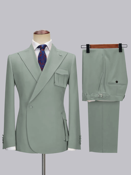 Tailored One Button Peak Lapel Men's 2 Pieces Wrap Suit with Deep Pockets