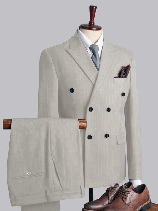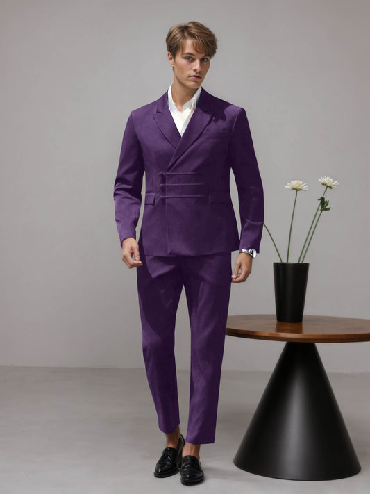 Designer 2 Pieces Men's Suit Regular Fit Double Breasted Peak Lapel Strap Accent