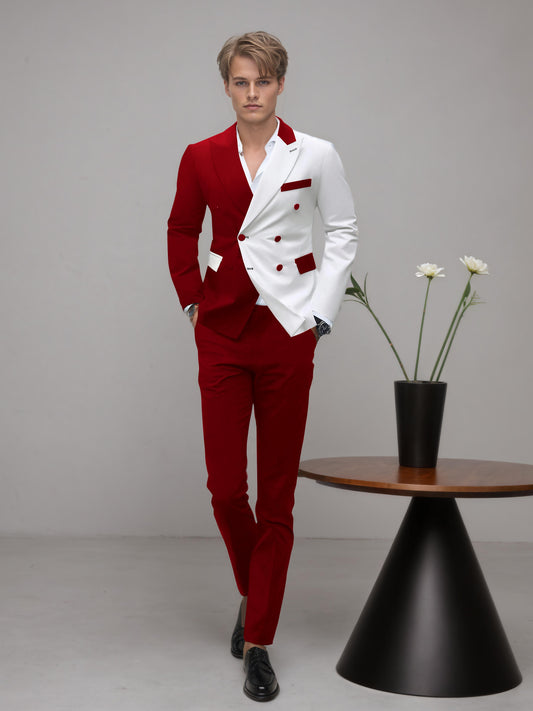 Bold 2 Pieces Men's Suit Tailored Fit Double Breasted Peak Lapel Contrast Design