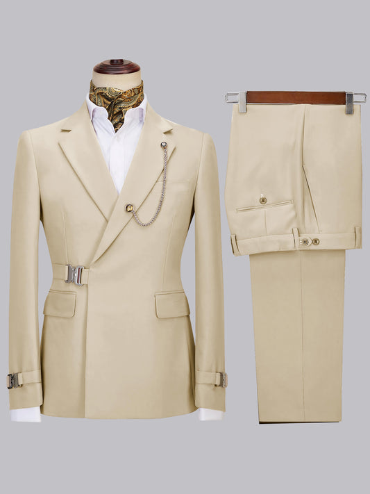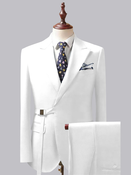 Statement 2 Pieces Men's Suit Tailored Fit Belted Peak Lapel Solid Wrap Style