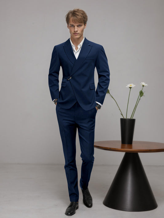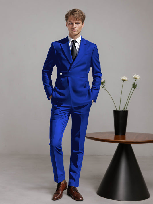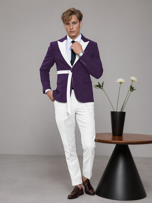 Unique 2 Pieces Men's Suit Tailored Fit Peak Lapel Belted Wrap Designer Style