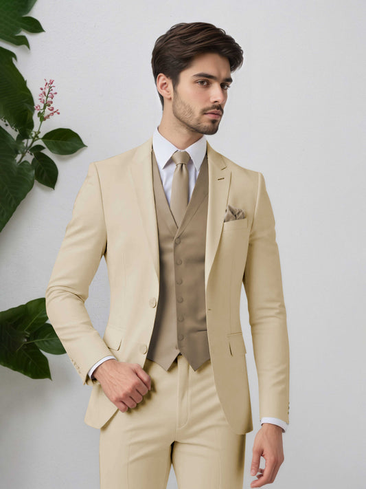 Refined 3 Pieces Men's Wedding Suit Tailored Fit One Button