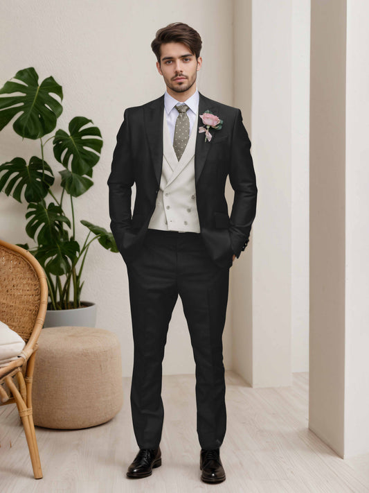 Refined 3 Pieces Men's Evening Suit Tailored Fit One Button Peak Lapel Designer Style