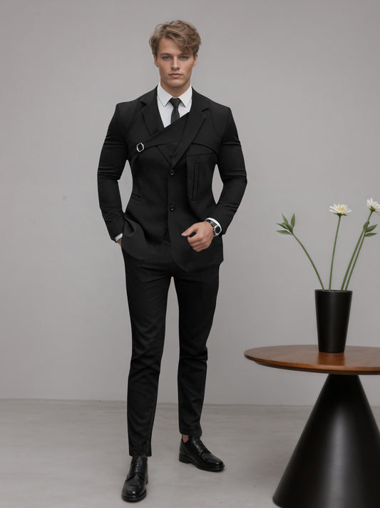 Contemporary 3 Pieces Men's Suit Tailored Fit One Button Unique Look
