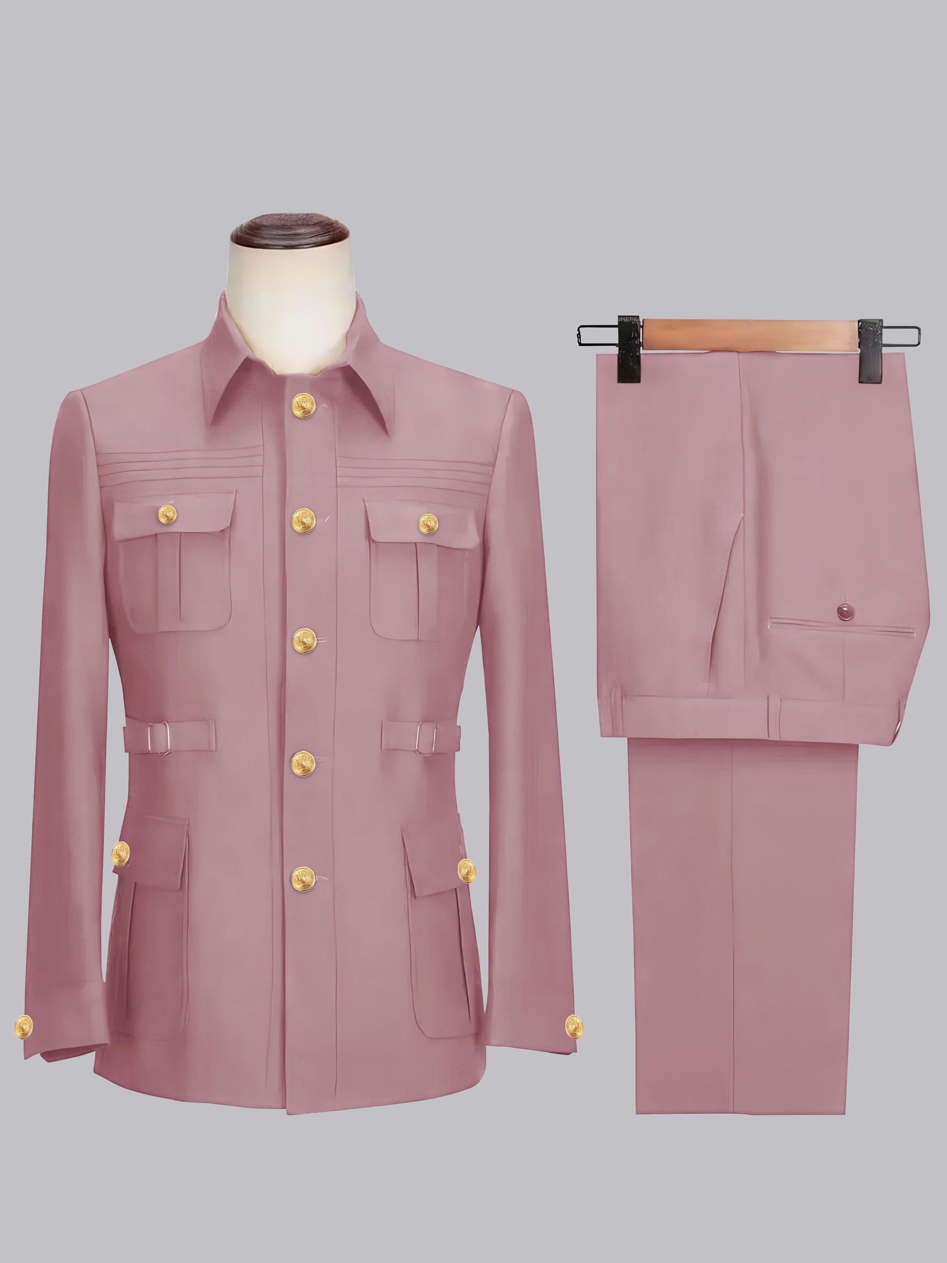Classic Belted Safari Style Men's 2 Pieces Single Breasted Casual Suits