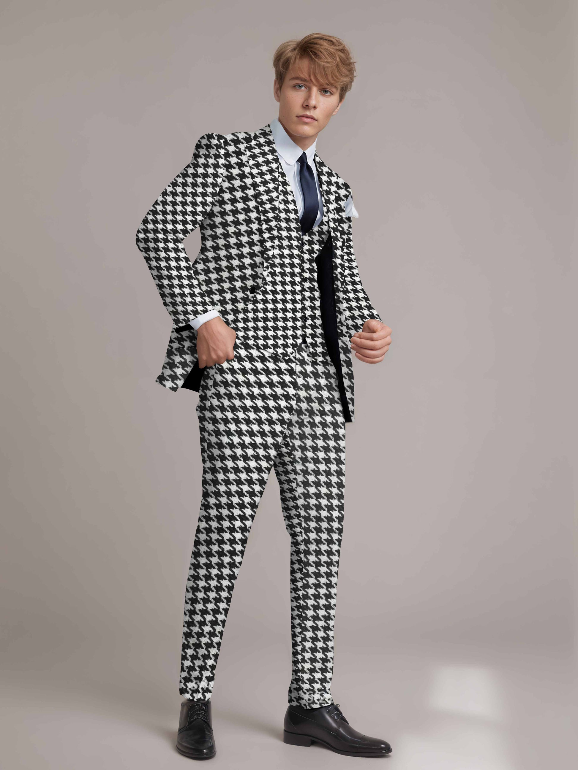 Timeless Peak Lapel Men's 3 Pieces Check Suit Houndstooth Business Suit